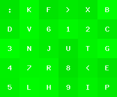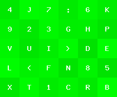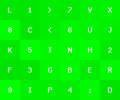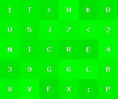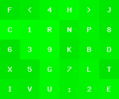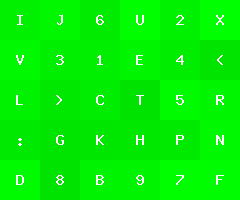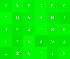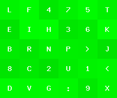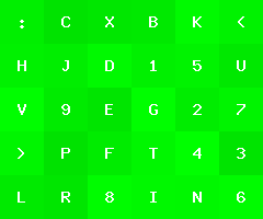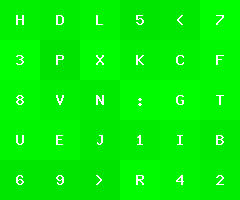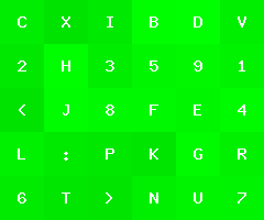 by Joel IBelow is an image with green tiles of varying color, each with a character label.