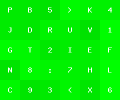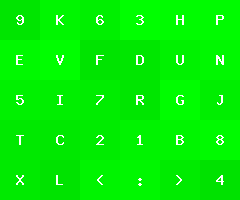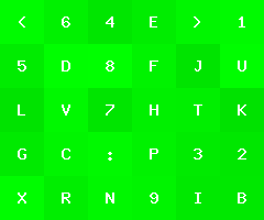 by Joel IBelow is an image with green tiles of varying color, each with a character label.